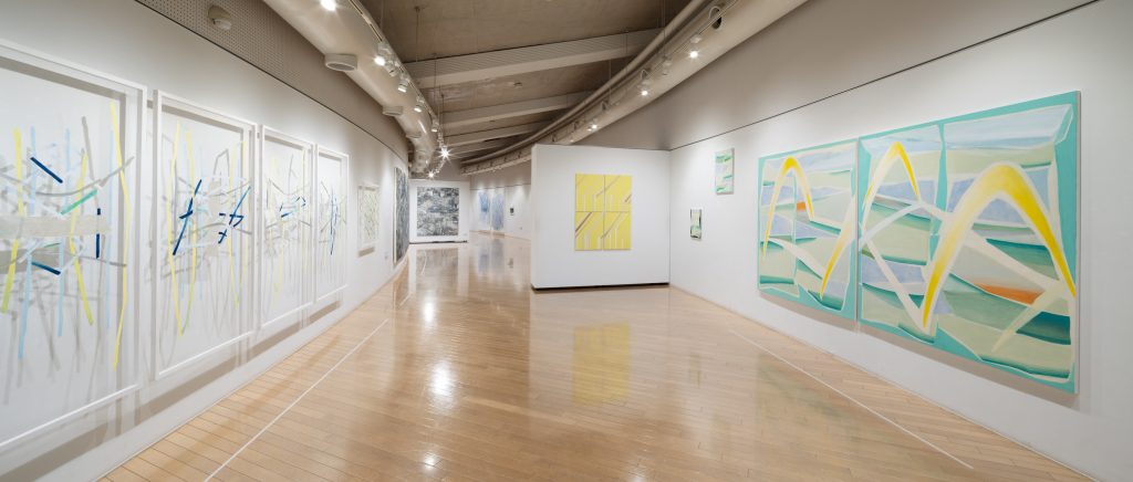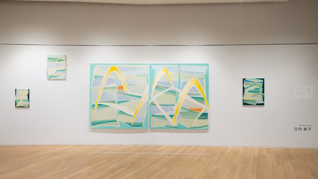 今年度は「アーティストシリーズ+(プラス)」として、過去の入選者から植田陽貴さん、阪本結さん、谷内春子さんをグループ展形式でご紹介しています。各々の特徴的な絵筆の動き、そして3人の作品に共通するテーマ「風景」をもとに、それぞれの作品がひとつの展示室の中で繋がっていく心地のよい展示空間となりました。